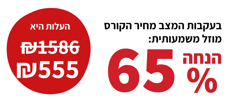 מיד עם השלמת הרכישה, יישלח אלייך סמס ומייל עם קישור, שם משתמש וסיסמה לאתר הקורס.