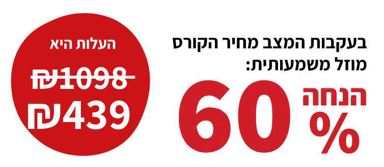 מחיר הקורס הינו 439 ש"ח במקום 1,098 ש"ח